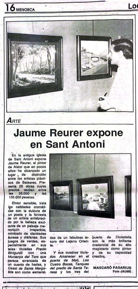 - [CA] Crítica de arte : nueva galería / José Mascaró Pasarius. – En: Baleares, 11-07-1988.