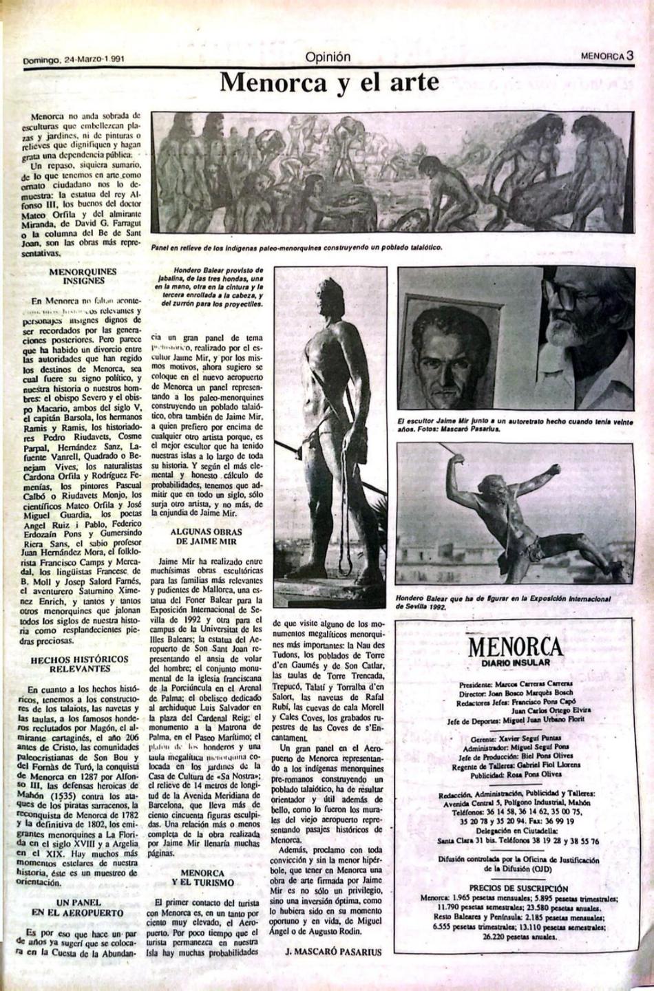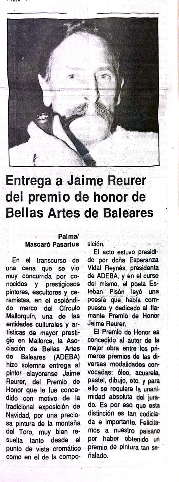 - [CA] Crítica de arte : un comienzo de temporada sosegado / José Mascaró Pasarius. – En: Baleares, 3-10-1988.