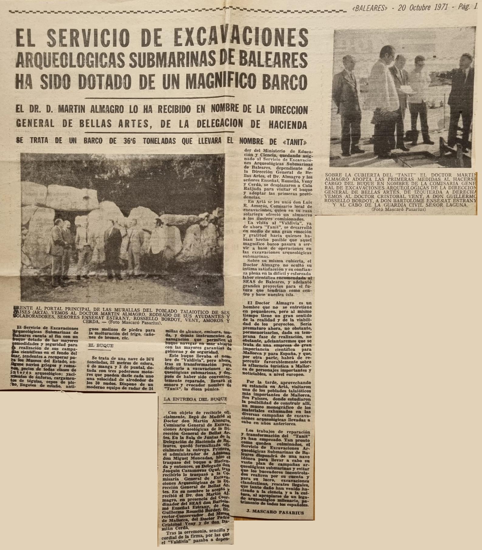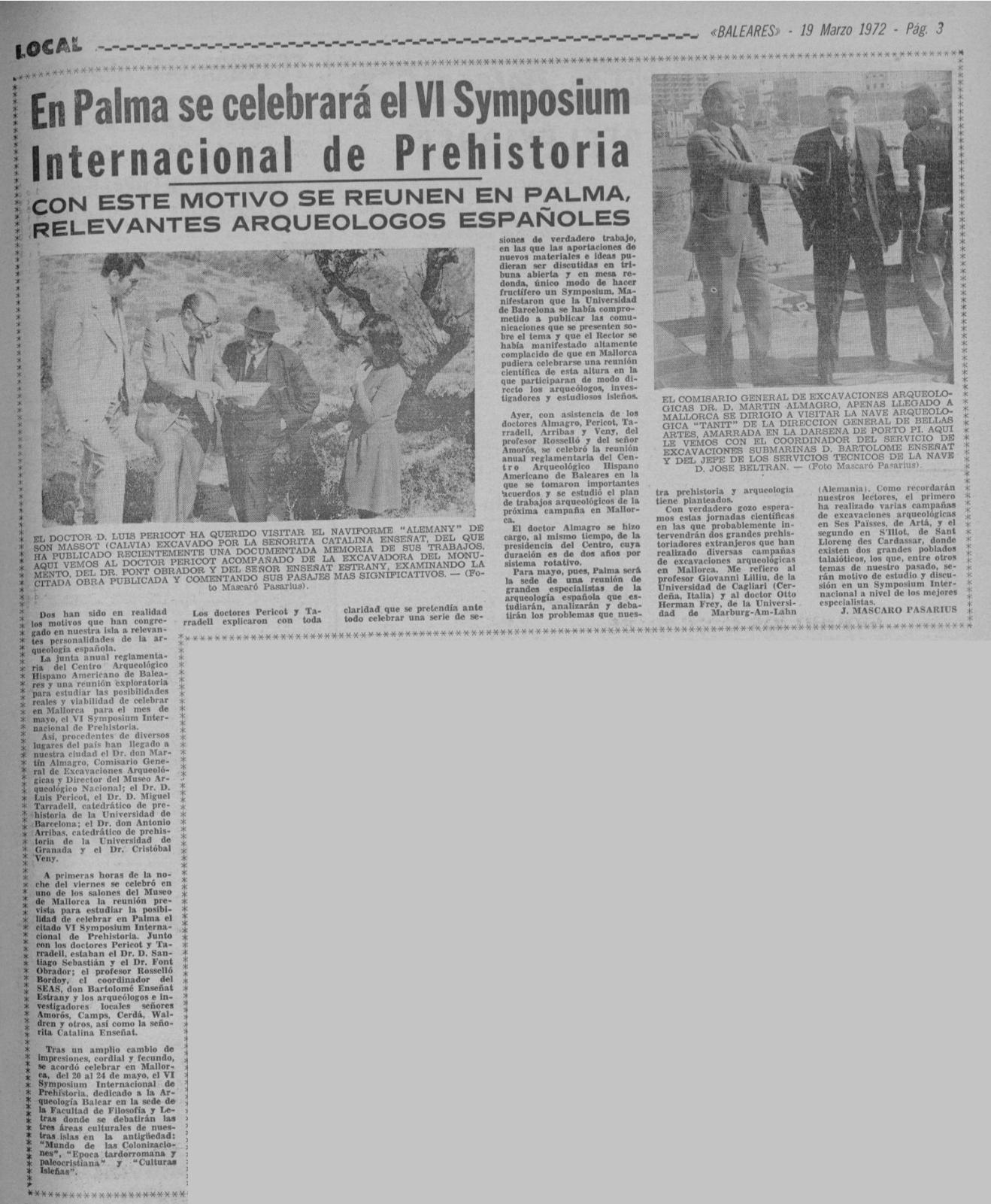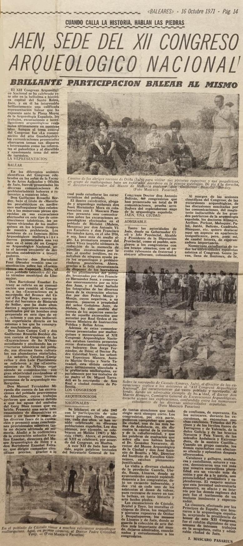 - [AP] De Re Arqueológica / J. Mascaró Pasarius. – En: El Iris n. 491, 8-11-1952, p.1, 3