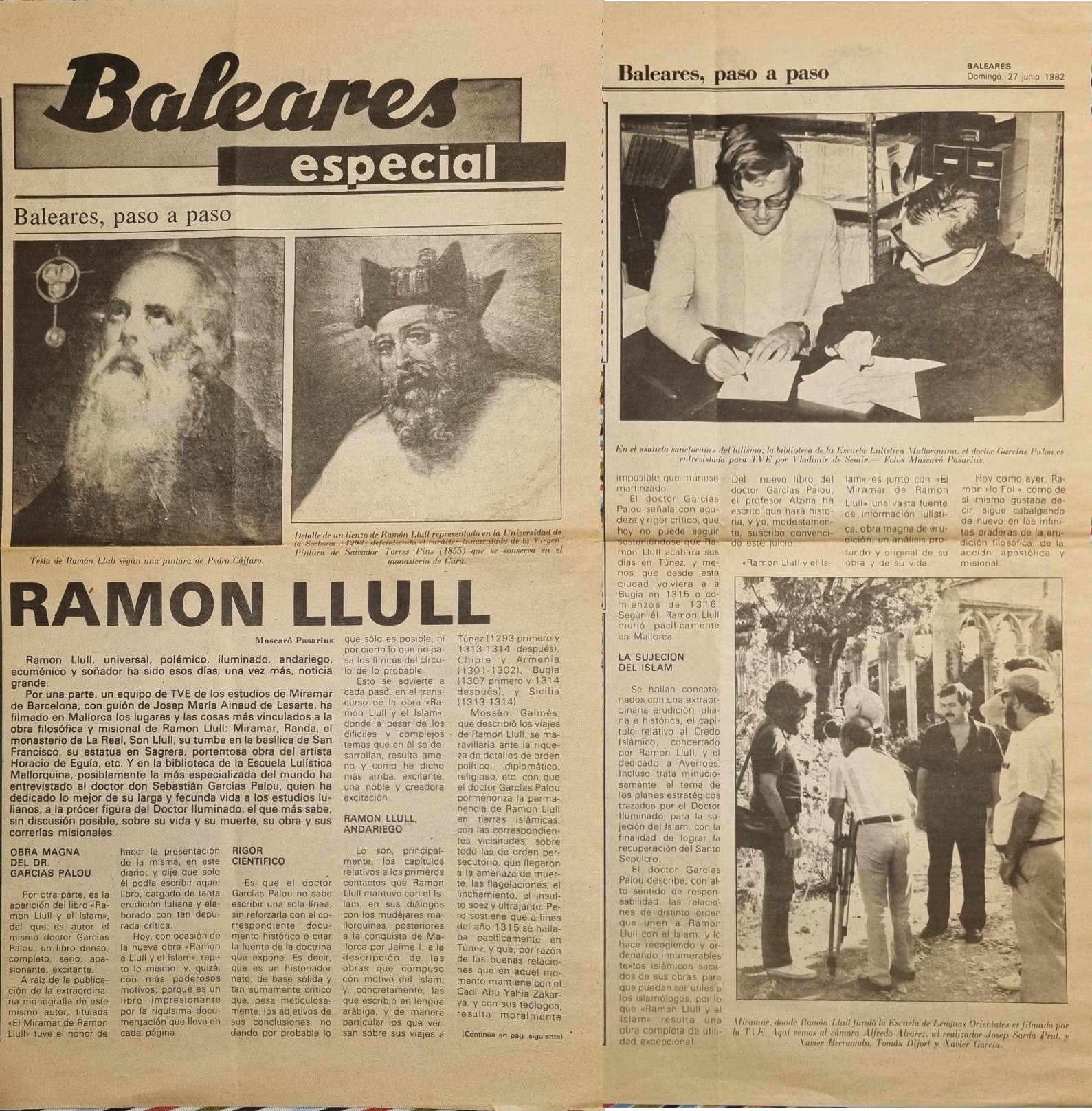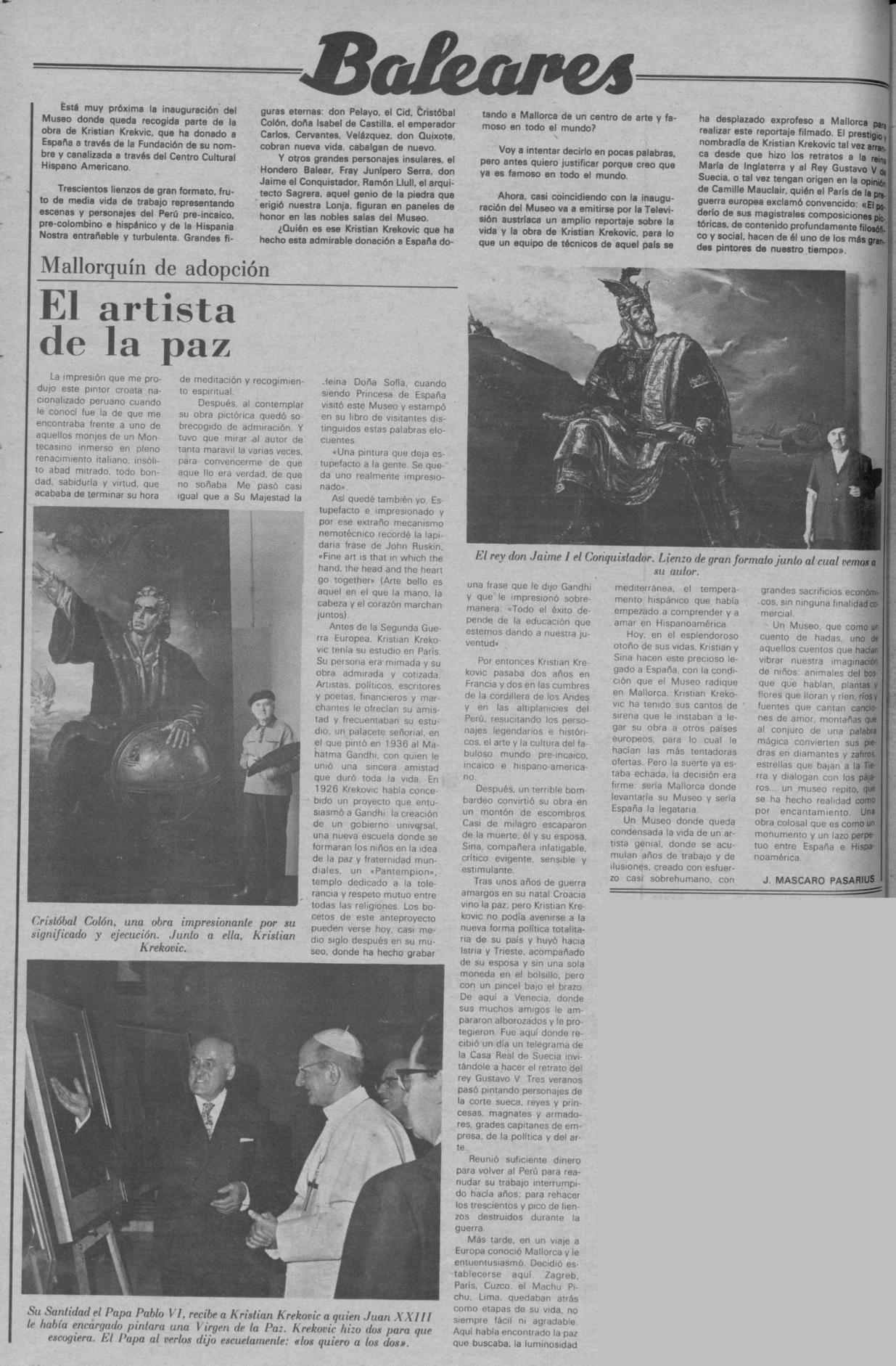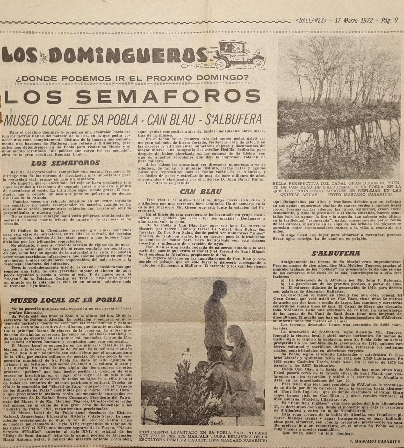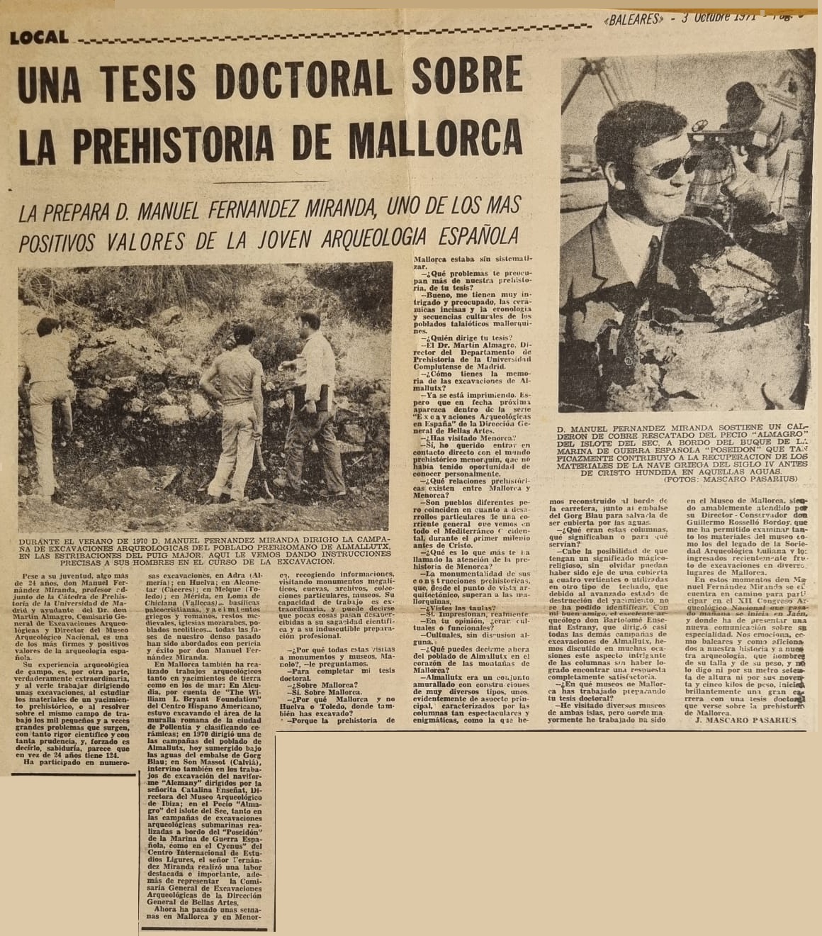 - [AP] De Re Arqueológica / J. Mascaró Pasarius. – En: El Iris n. 491, 8-11-1952, p.1, 3