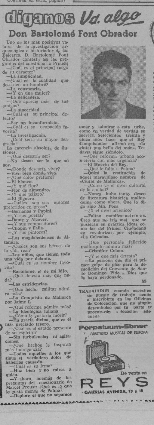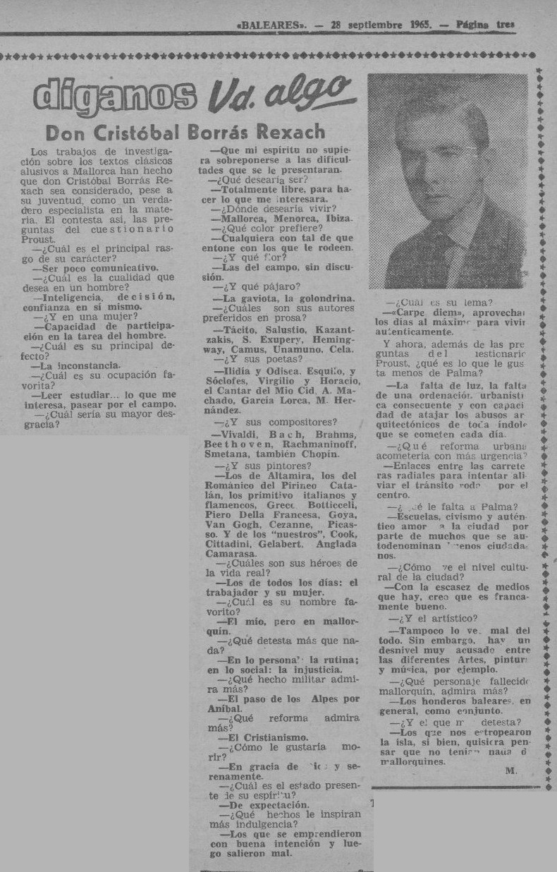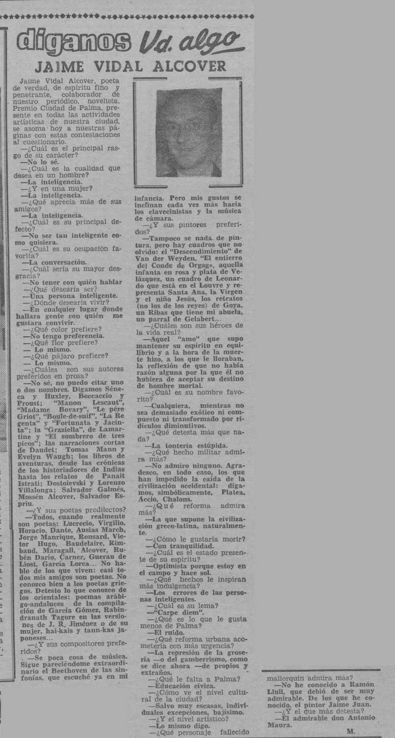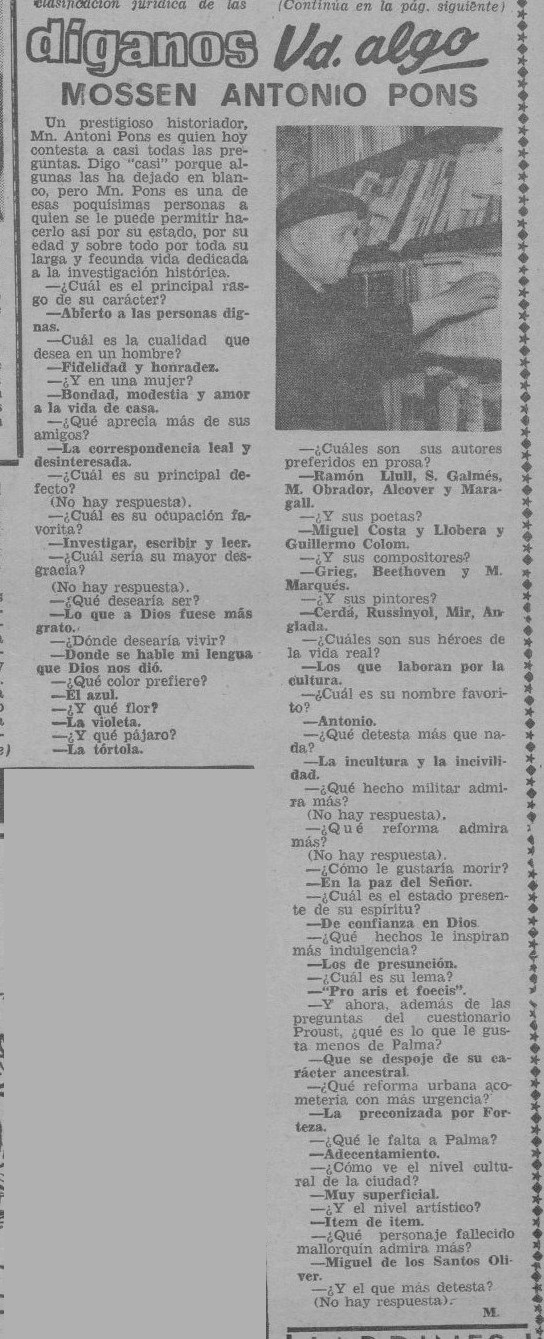 - [AP] ¿Qué lee la juventud? / José Mascaró Pasarius. – En: Menorca, 20-12-1945, p. 2