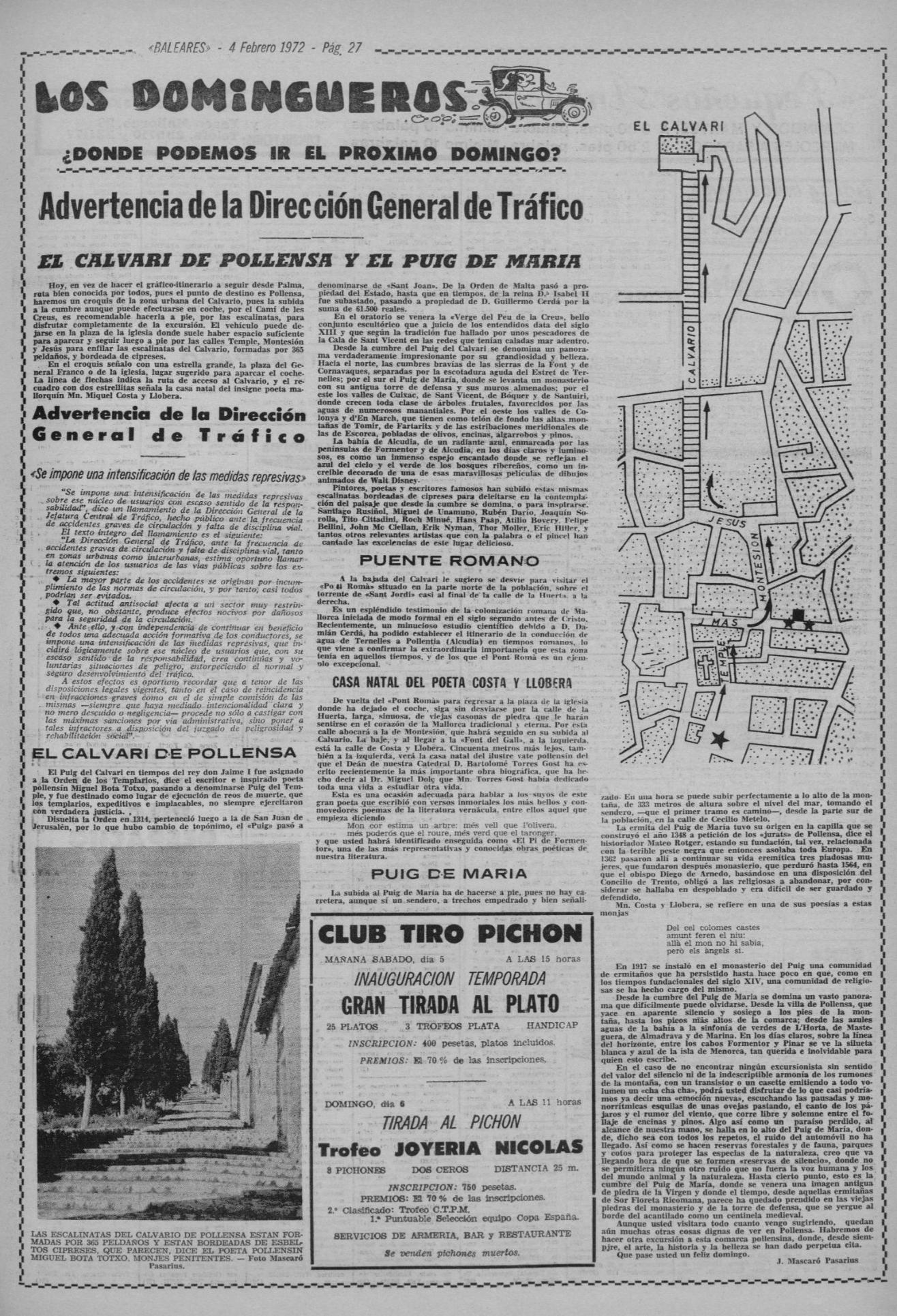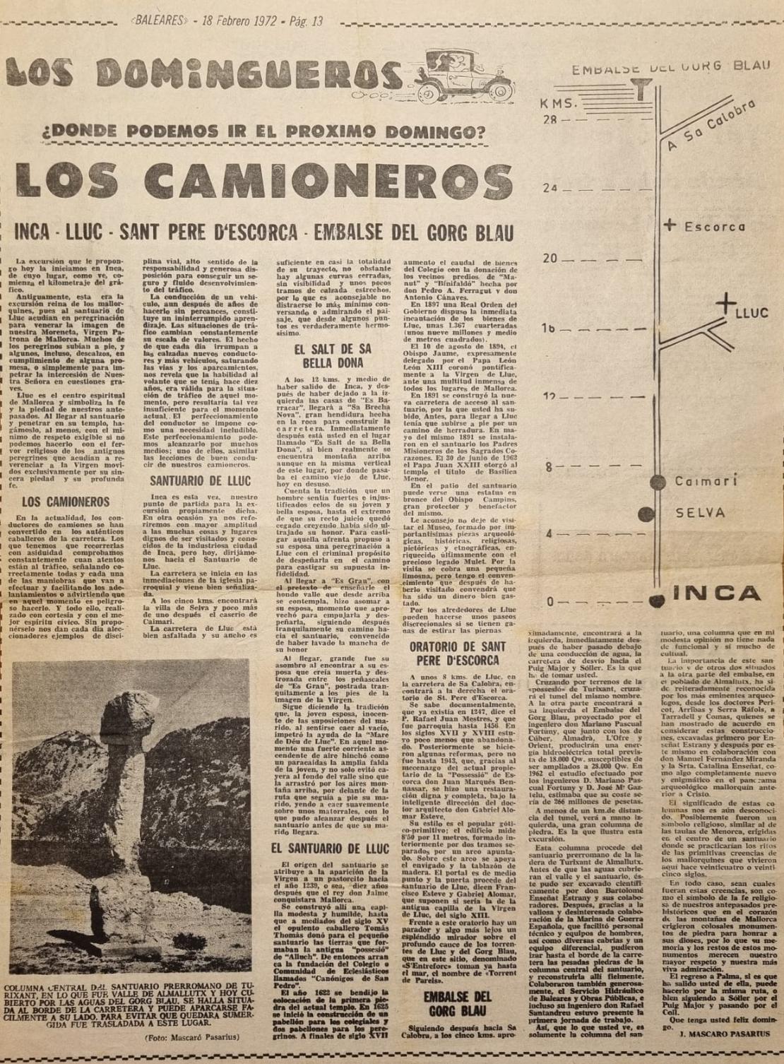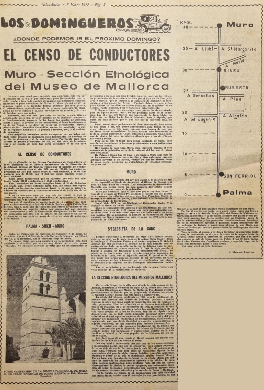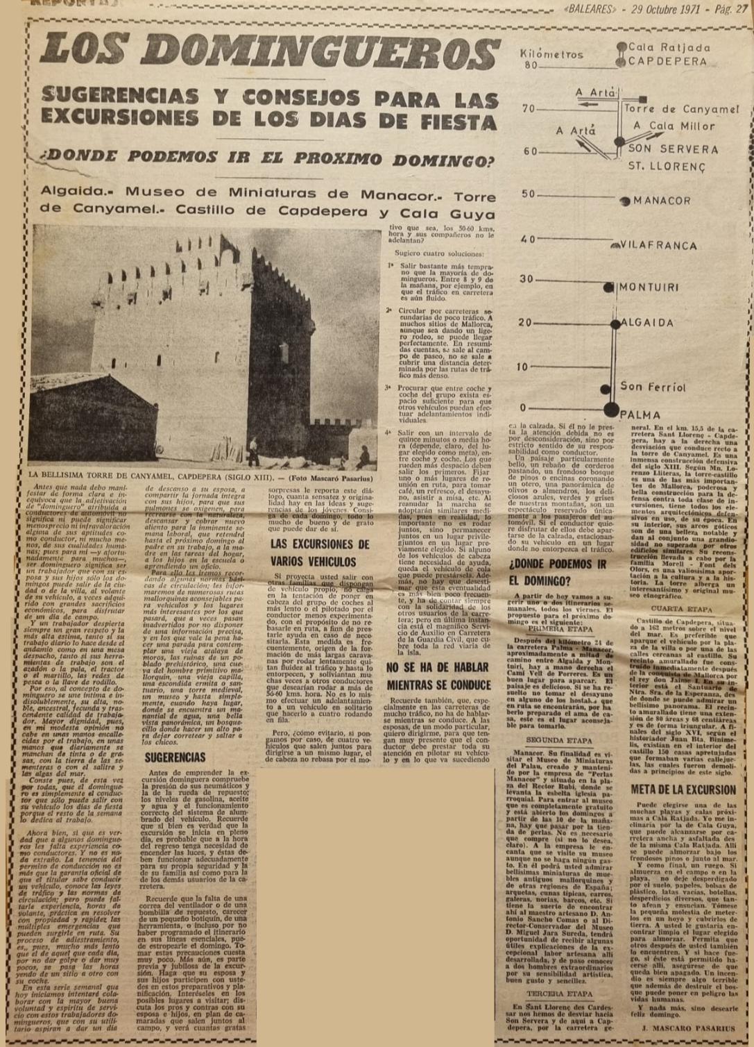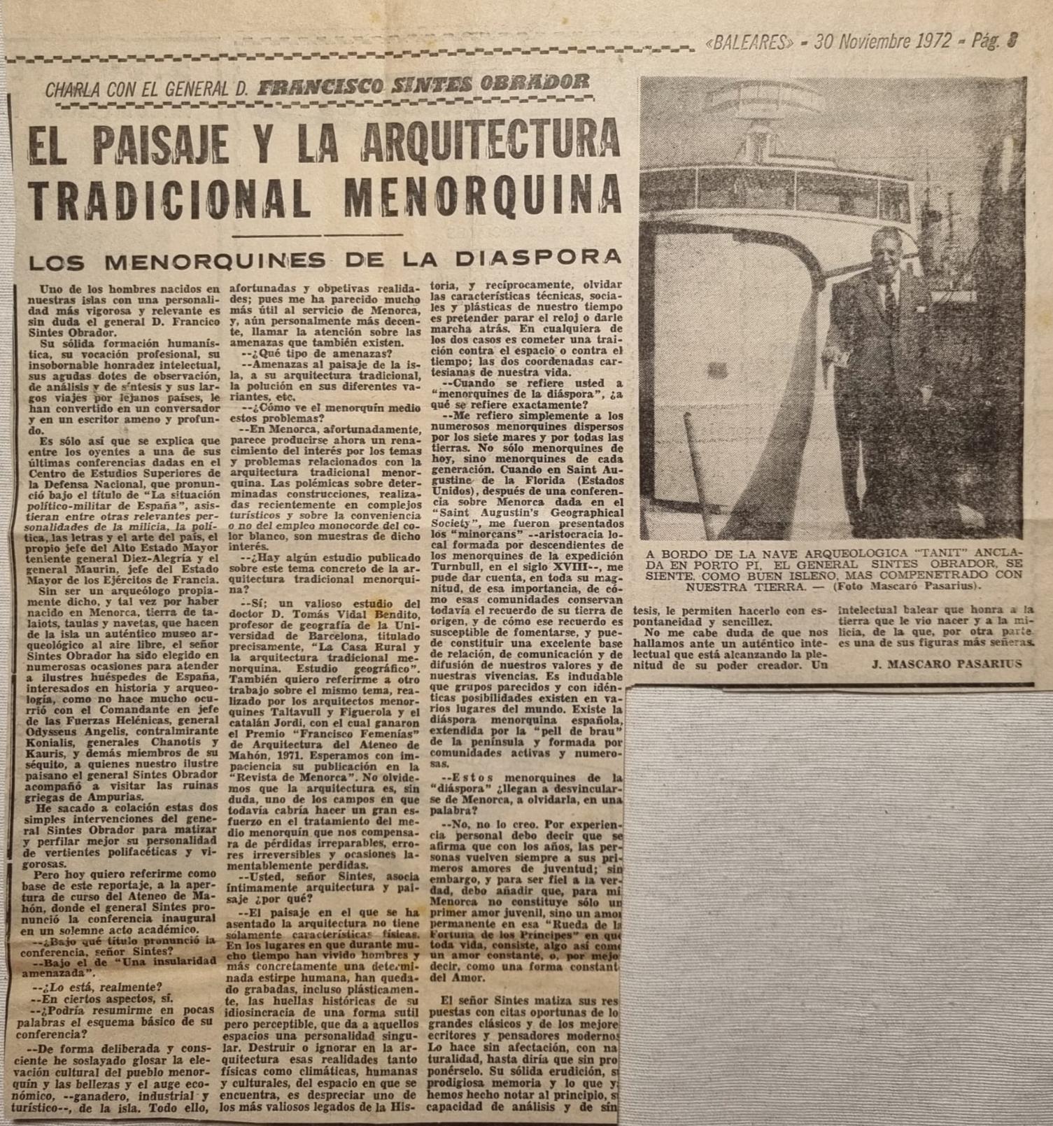 - [AP] Los talayots de la zona norte de Menorca / J. Mascaró Pasarius. – En: Menorca, 10-02-1953, p. 2.