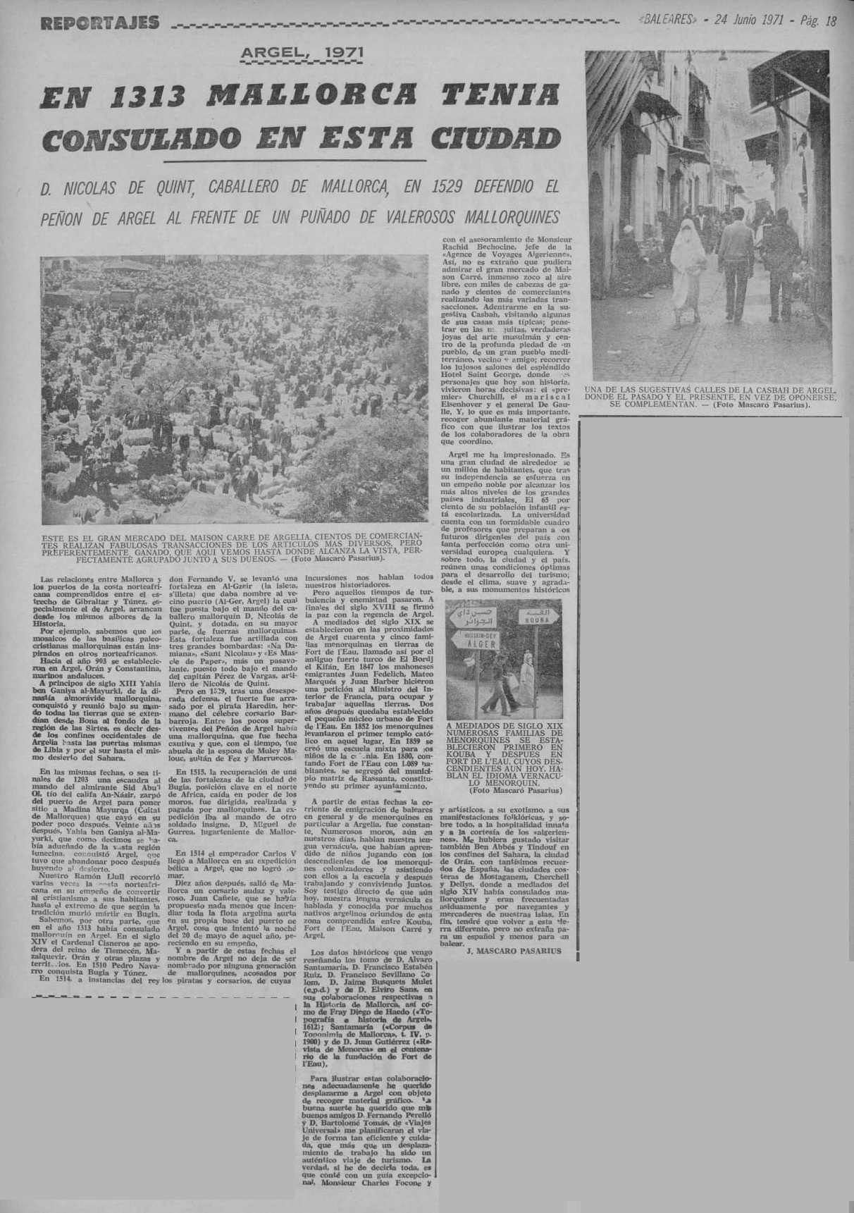 - [AP] Huellas españolas en África / José Mascaró Pasarius. – En: Menorca, 17-09-45, p. 3