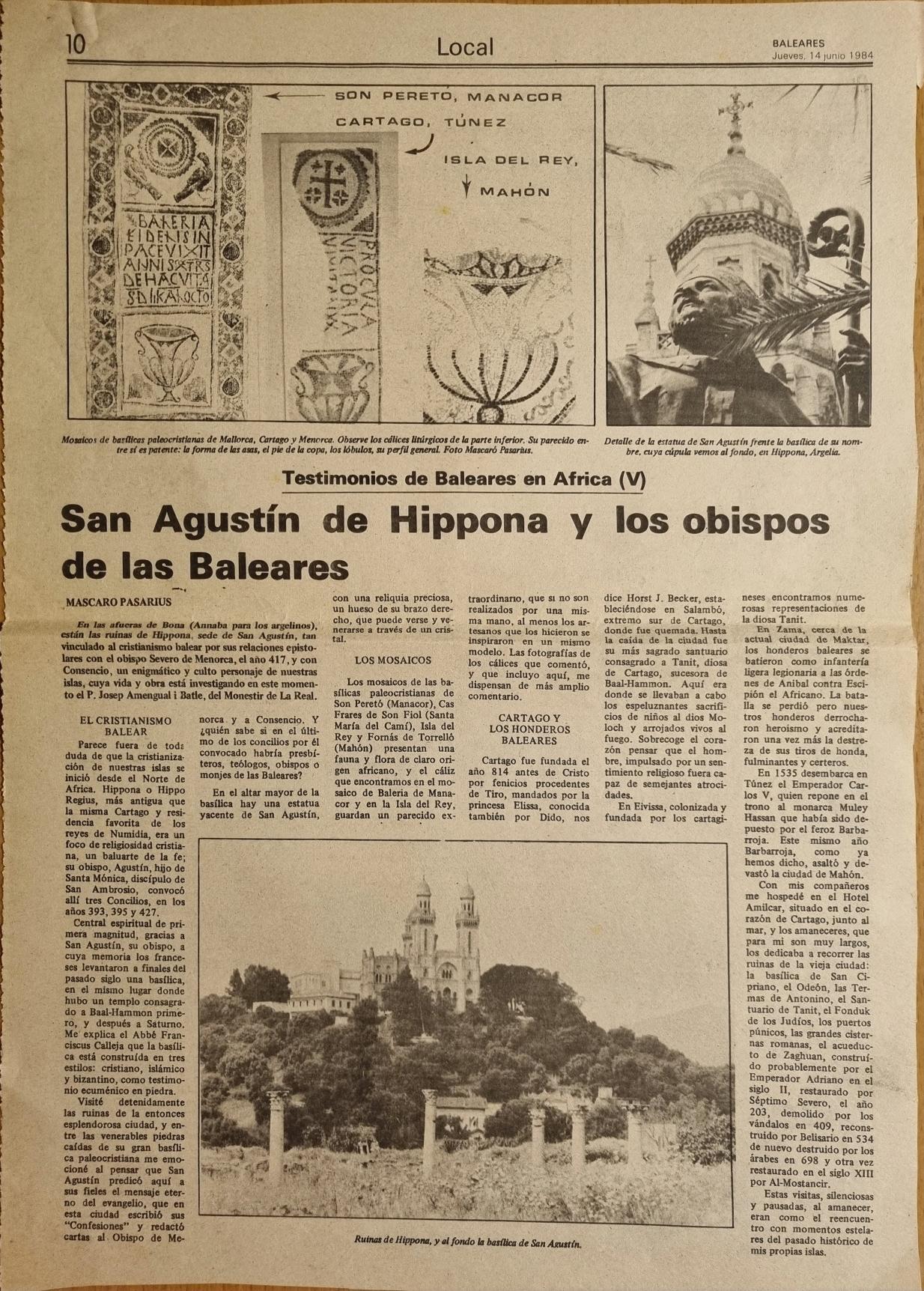 - [AP] Las taulas desaparecidas de “St Agustí” / J. Mascaró Pasarius. – En: Monte-Toro n. 100 (marzo 1953), p. 27-30 : il.