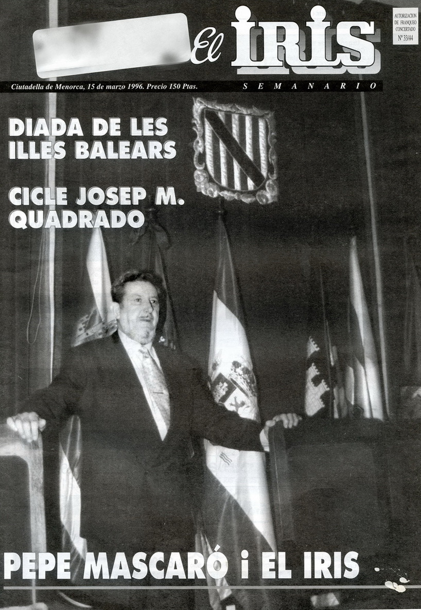 Entrevista. Pepe Mascaró Pasarius. De Director de El Iris a Medalla de Oro de la Comunidad Autónoma. El Iris, 15-3-1996 p. 12