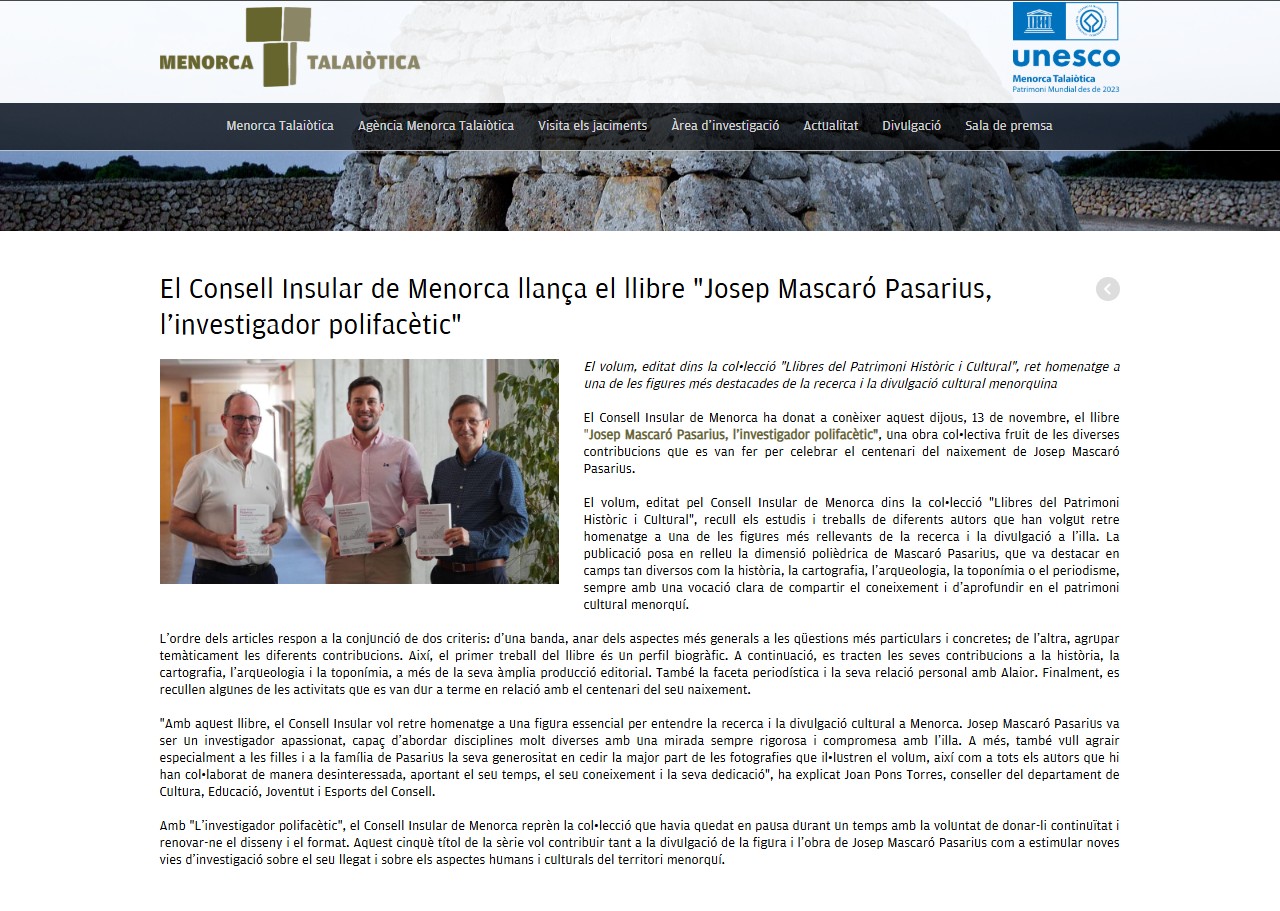 Web Menorca Talaiòtica, 11-11-2025