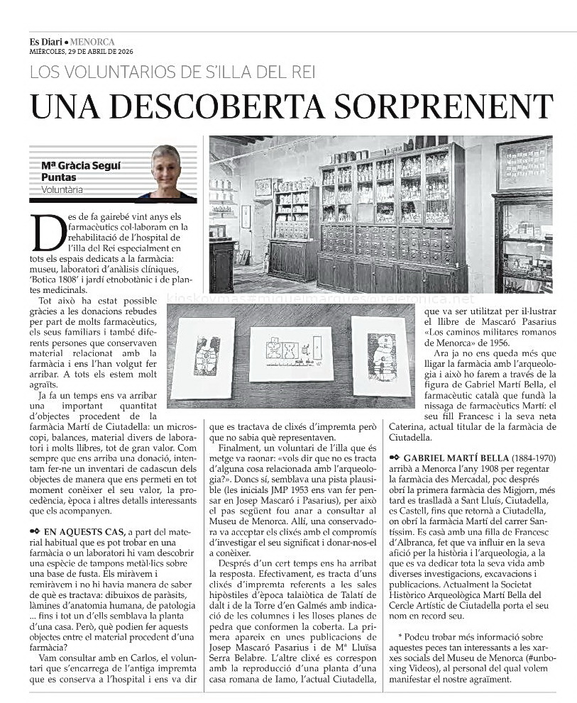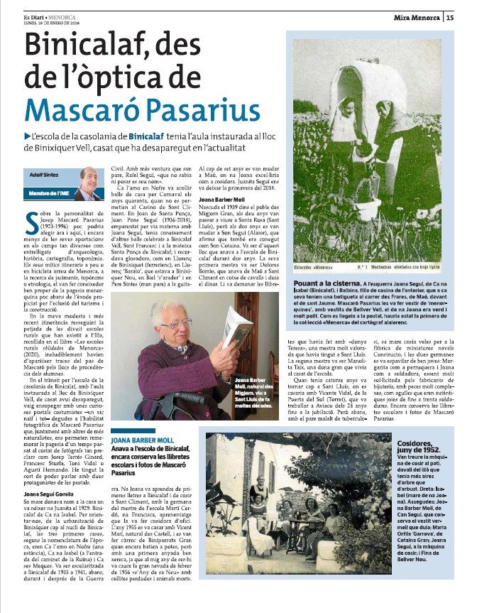“Binicalaf, des de l’òptica de Mascaró Pasarius”. Article d’Adolf Sintes. Es Diari.MENORCA, 26-1-2026