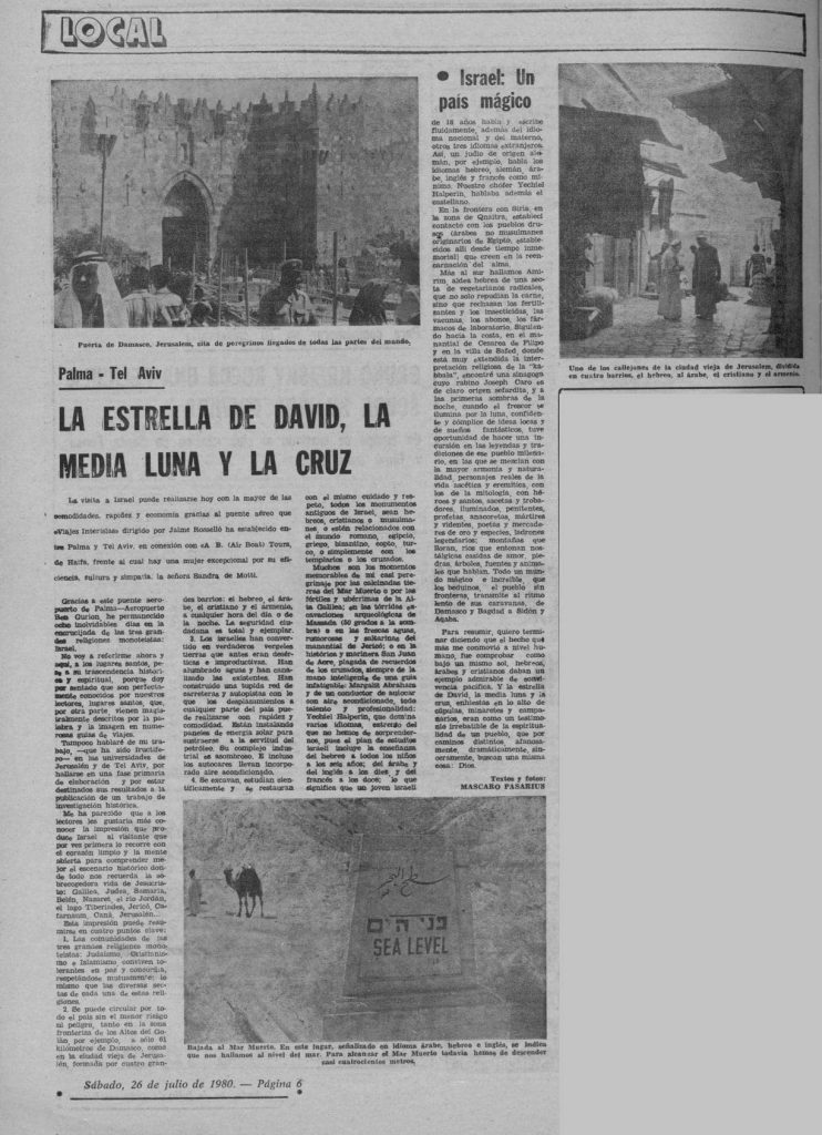 Palma – Tel Aviv. La estrella de David, la media luna y la cruz. Baleares, 26-7-1980