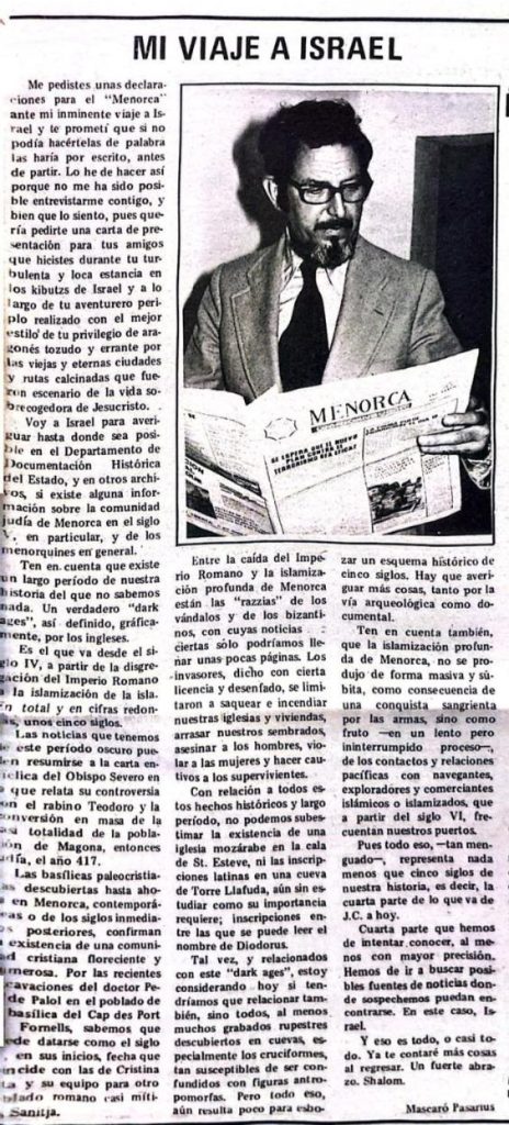 Mi viaje a Israel. Carta publicada al Menorca, 10-7-1980