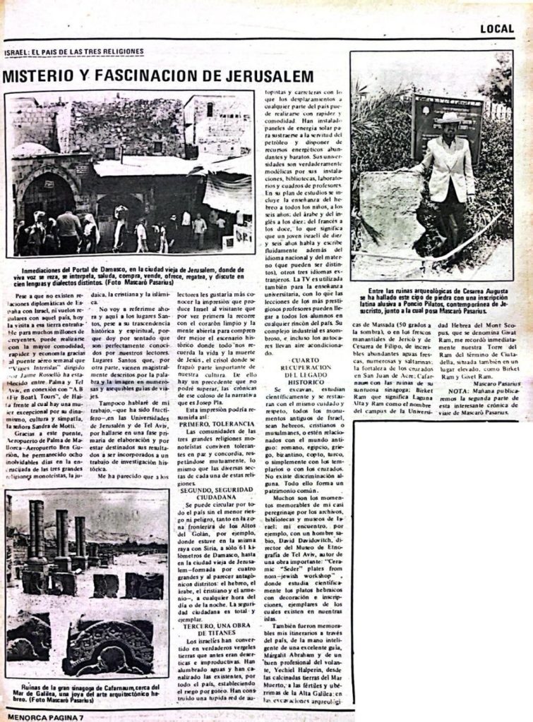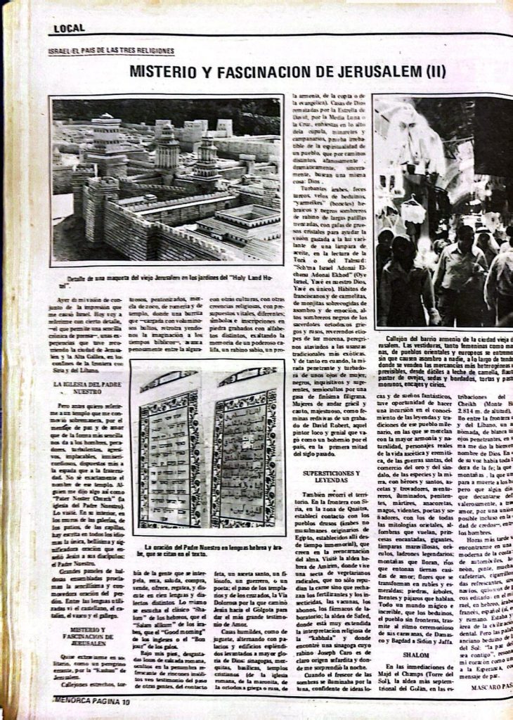 Israel, el país de las tres religiones. Misterio y fascinación de Jerusalem. Menorca, 28-7-1980