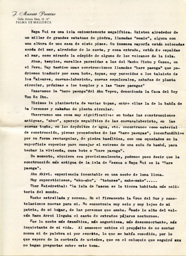 Guió de la conferència Las grandes incógnitas de las Islas del Pacífico Sur, p. 2 a l’Asociación Hispano Alemana “Altamira”, 28-10-1978