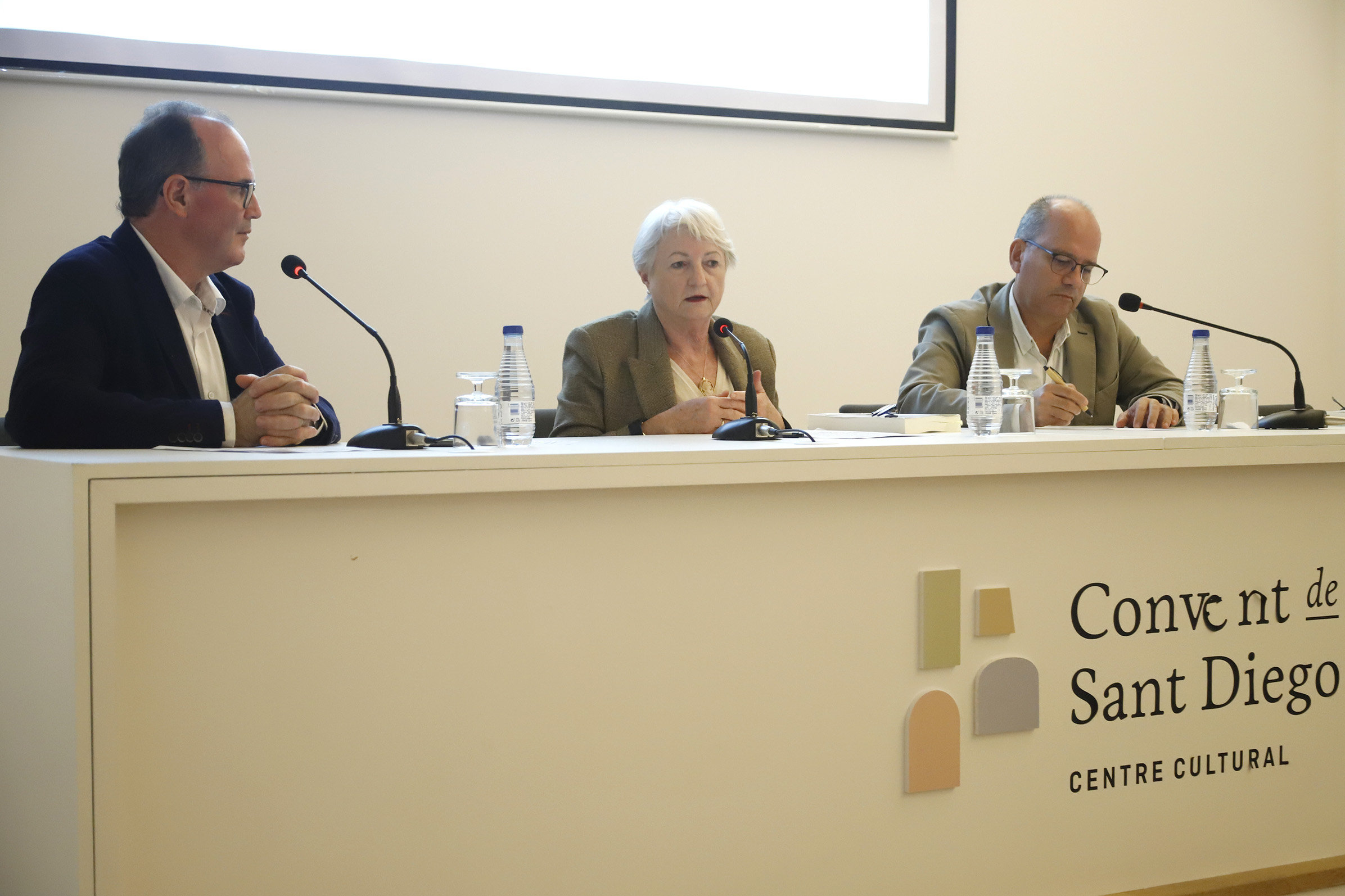 Miquel Àngel Marquès, Cristina Rita i Simón Gornés durant l’acte de presentació del llibre de JMP. Alaior, 13-11-2025. Foto Gemma Andreu