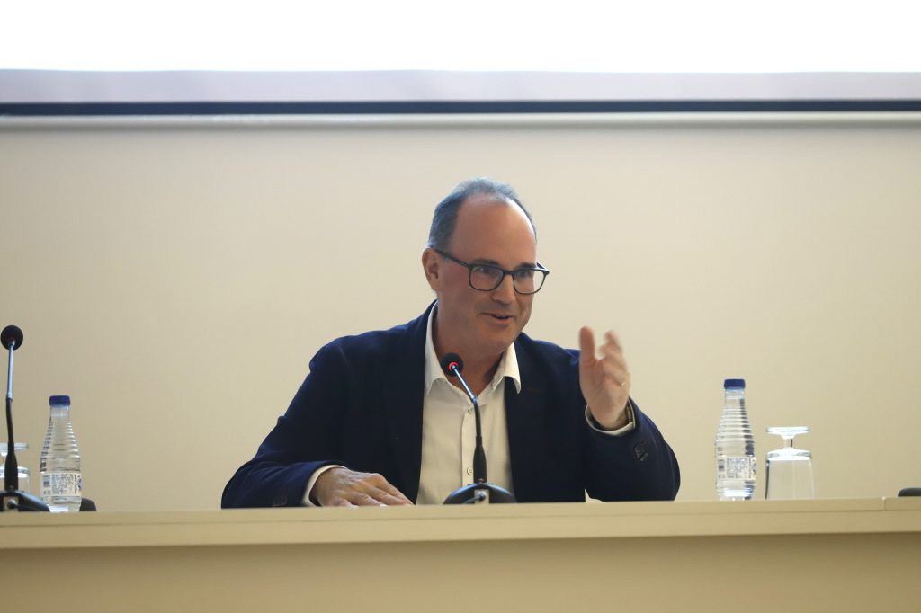 Simón Gornés Hachero, conseller executiu del Consell Insular de Menorca, fa el tancament de l’acte a Alaior, 13-11-2025
