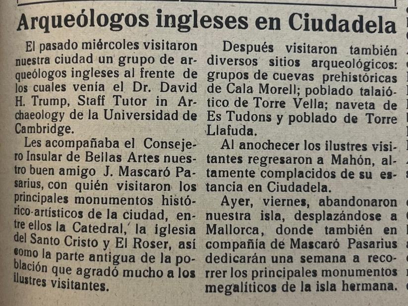 Notícia de la visita de l’arqueòleg anglès David H. Trump