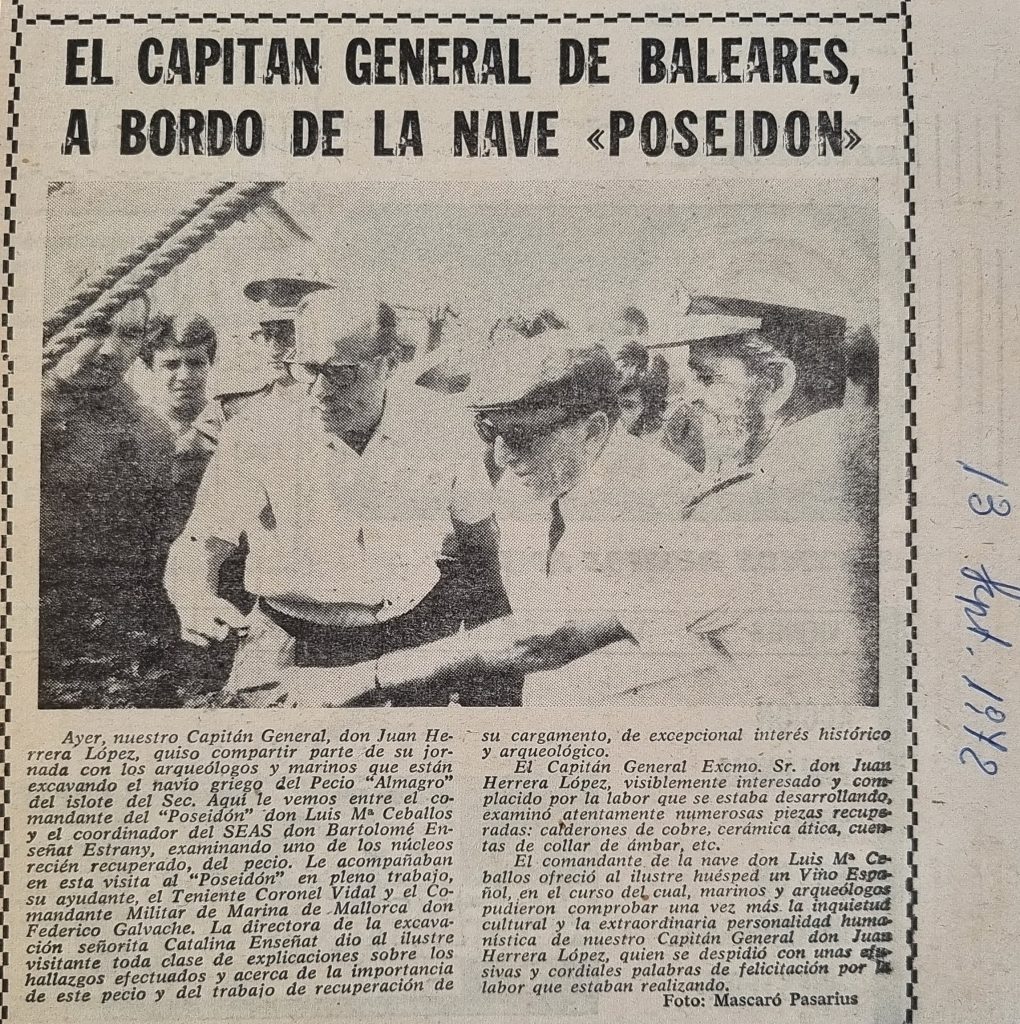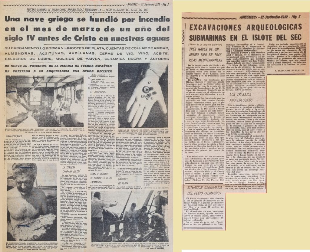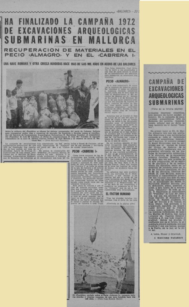 Ha finalizado la campaña 1972 de excavaciones submarinas en Mallorca. Baleares, 23-9-1972