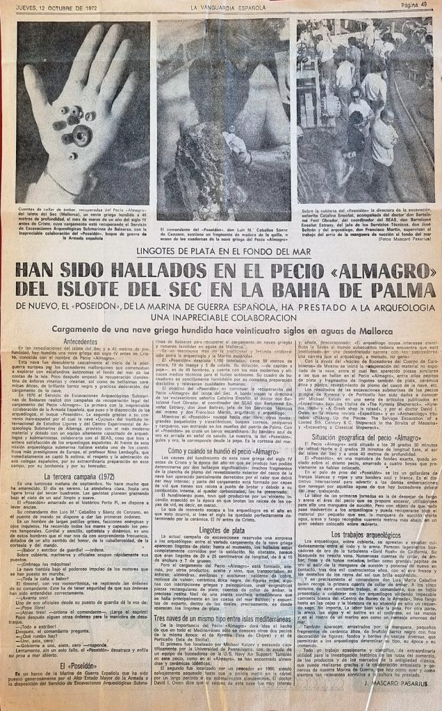 Lingotes de plata en el fondo del mar. La Vanguardia, 12-10-1972