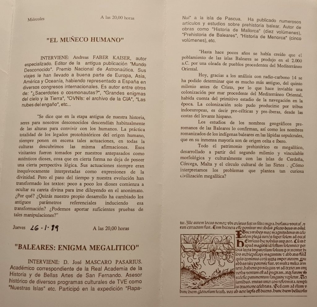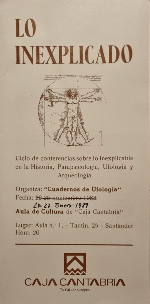 Portada del programa Lo inexplicado, cicle de conferències a l’Aula de Cultura de Caja Cantabria.